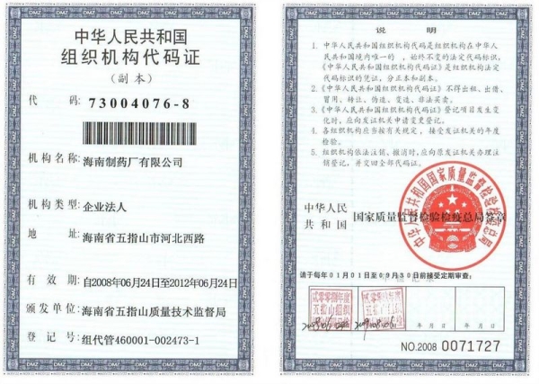 海南制藥廠有限公司藥品生產(chǎn)許證可證