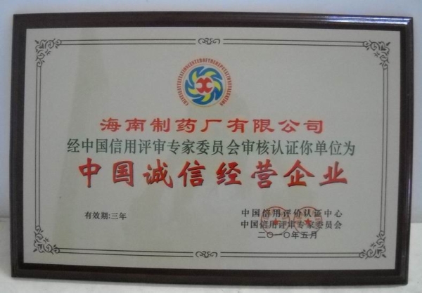 【中國(guó)誠(chéng)信經(jīng)營(yíng)企業(yè)榮譽(yù)證書(shū)】